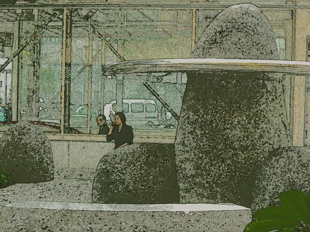 After 12,000 years of painful toil and creative endurance an instant Global interaction. A chance moment of cell-phone communication is in an iconic-organised ‘Stone Age’ setting in our world’s most technologically advanced metropolis. It captures Humanity’s debt to Neolithic-era ‘Belt-and-Road’ pioneers in their Civilising initiative, forward-planning and forewarning instruction – at